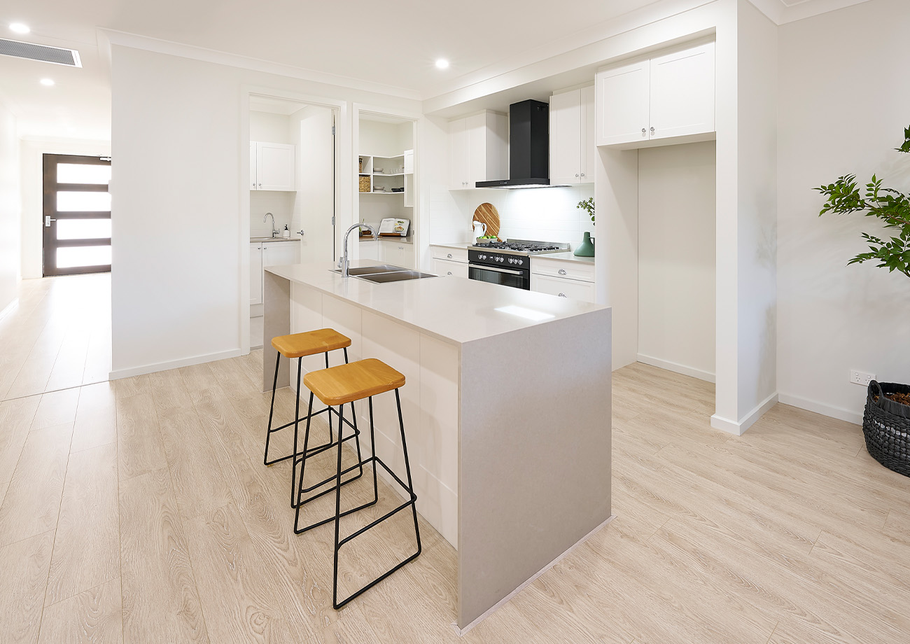 - Upgraded kitchen cabinetry and waterfall ends to island bench, and stone to butler’s pantry