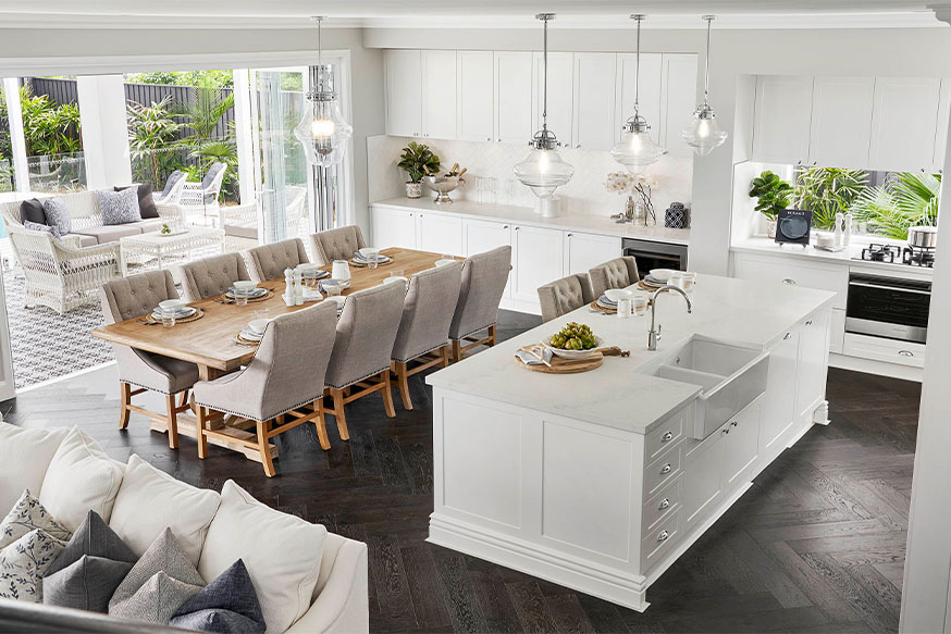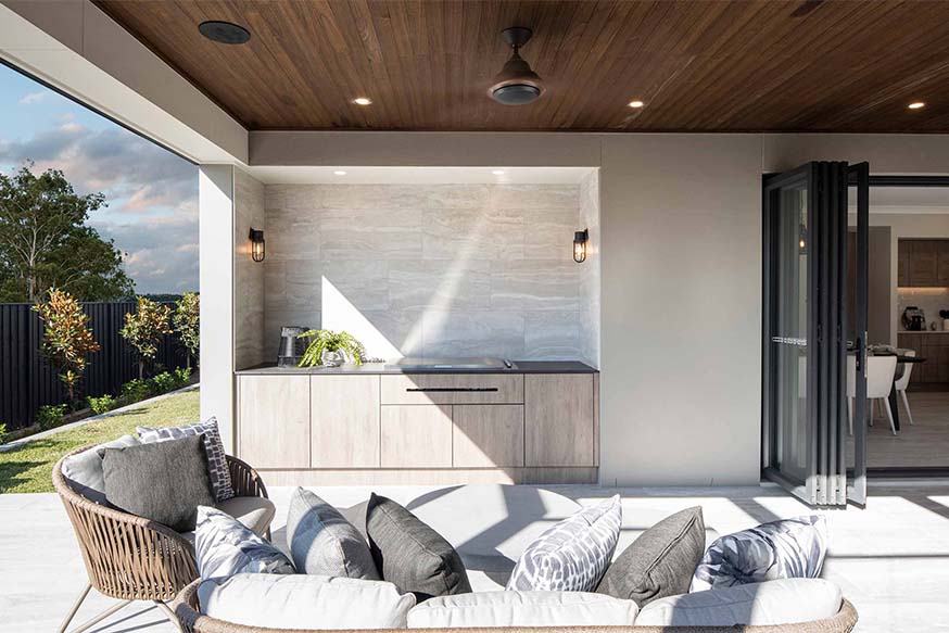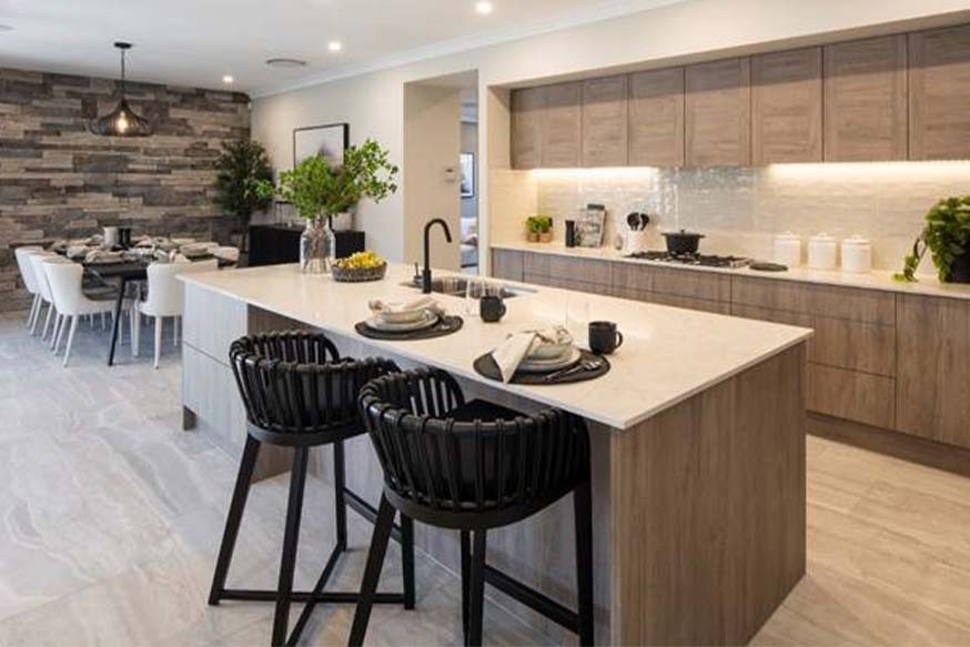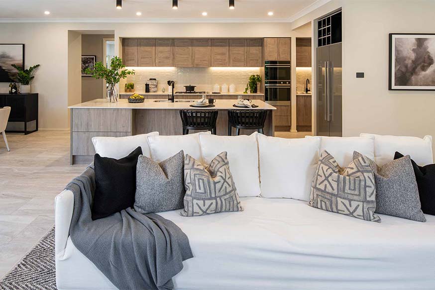 The luxurious new Retreat Executive from the McDonald Jones Stuart Everitt collection showcases the best of modern design with effortless flow between the spacious living zones and private quiet spaces, perfect for modern lifestyles. The beautifully designed galley kitchen is designed to delight the home chef with practicality, ease and style. Active families will love the highly functional layout, offering easy access through the butler’s pantry to home theatre and bedrooms wing for the ultimate convenience and connectively.