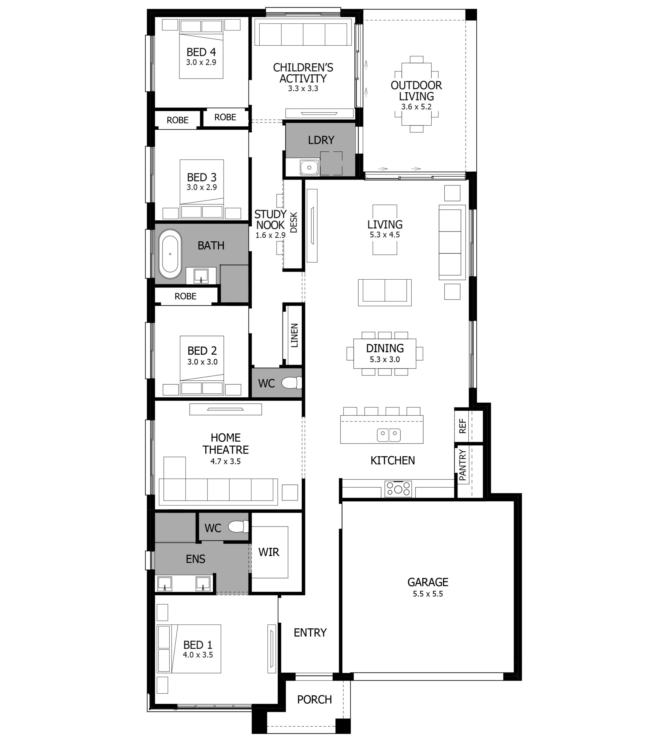 - The three minor Bedrooms and main Bathroom sit off the hallway opposite the Study Nook, a designated space the kids can use to do their homework.