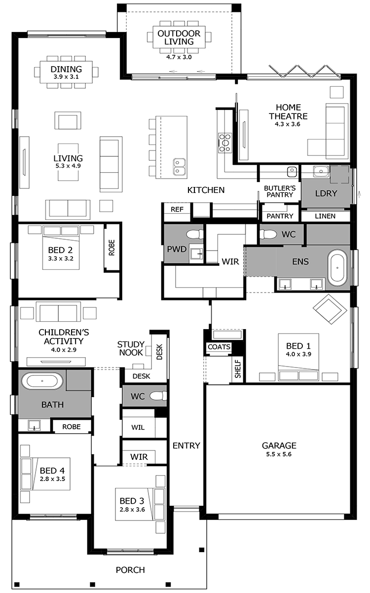 - Children’s Activity room that also opens on to the Outdoor Living.